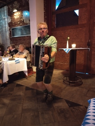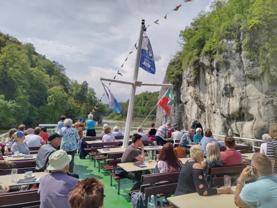 Am 2. Tag brachen wir nach dem Frühstück auf zu einer Rundfahrt durchs Altmühltal. Unser Reiseleiter Wolfgang erzählte uns viel über die Orte und Gegenden, die wir passierten auf unserer Fahrt nach Kelheim. Von dort ging es mit dem Schiff weiter durch den Donaudurchbruch nach Weltenburg, wo wir das Kloster besichtigen und das berühmte Klosterbier genießen konnten. Am Abend fand im „Saustadl“ des Hotels ein bayrischer Abend statt. Neben den tollen bayrischen Spezialitäten unterhielt uns „Leo mit seinem Akkordeon“.