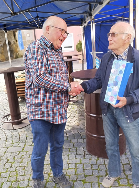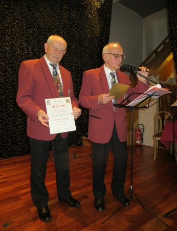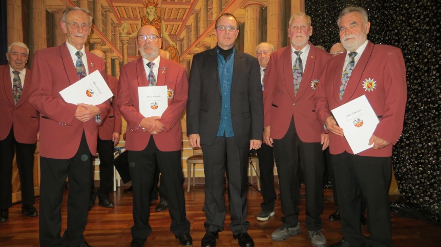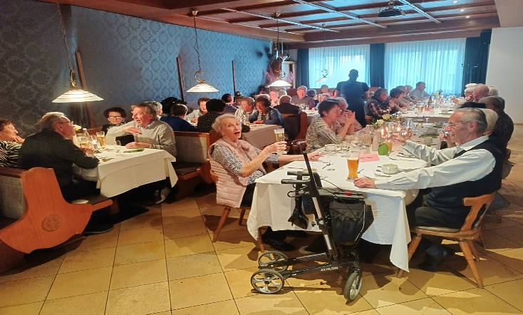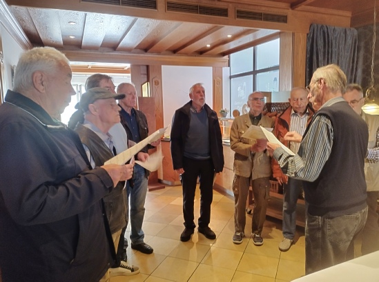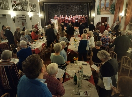 Nachdem unser Jubiläumskonzert 2020 der Coronapandemie zum Opfer gefallen war und wir auch im darauffolgenden Jahr keine Auftritte planen konnten, hatten wir für 2022 vorgesehen, das Jubiläumskonzert in einem kleineren Rahmen nachzuholen. Jedoch hat Corona beim Chor deutliche Spuren hinterlassen, sodass von den Aktiven nach der Pandemie nur noch 17 Sänger regelmäßig zu den Chorproben gekommen sind. Dies veranlasste uns, auch in diesem Jahr kein großes Jubiläumskonzert zu veranstalten. Allerdings wollten wir unseren Mitgliedern, die uns die ganze Zeit über treu geblieben sind und auch dem Verein selbst das Jubiläum nicht vorenthalten. So entstand die Idee, dass wir ein „kleines Konzert“ nur für unsere Mitglieder im Zieglersaal der Gaststätte Akropolis veranstalten. Jetzt, am 20. November war es soweit, 105 Sänger und Mitglieder kamen in den schönen Saal. Dieter Emig, unser 1. Vorsitzender begrüßte die Gäste, darunter Rosemarie Appel vom Chorverband Karlsruhe-
