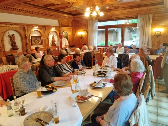 Da die Essenswünsche bereits vor dem Programmstart aufgenommen wurden, begannen die Bedienungen sofort mit dem Servieren der hervorragenden Speisen. Dies ging alles sehr flott, in Kürze waren alle mit ihren bestellten Speisen versorgt. Dafür herzlichen Dank an die Mitarbeiterinnen und Mitarbeiter des Restaurants.