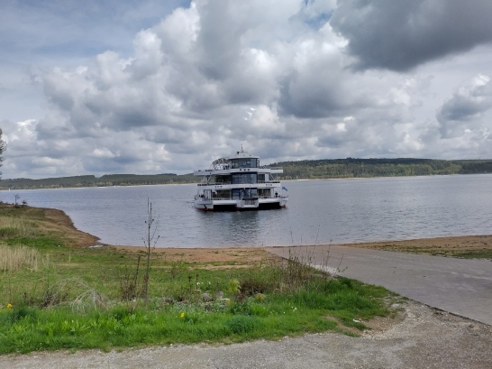 Am zweiten Tag unternahmen wir eine Rundfahrt entlang des Rennsteigs. Wir hatten für diesen und den nächsten Tag eine Reiseleiterin engagiert, ein Unikum, die Jutta. Der Weg führte uns zum Hohenwarte Stausee (auch das Thüringer Meer genannt), auf dem wir dann eine 90-