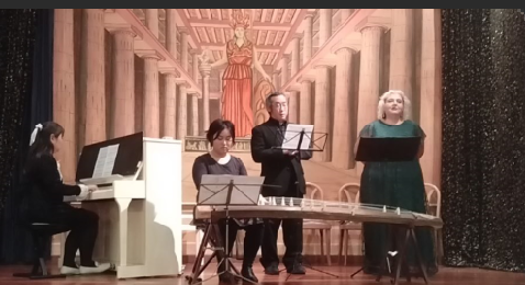 Nach diesen Ehrungen kamen unsere eingeladenen Künstler auf die Bühne. Makitaro Arima, Colette Sternberg, Momo Arima und Reiko Emura begeisterten die Gäste mit ihren Stimmen und Instrumenten. Ob als Solisten, im Duett oder alle zusammensorgten für gute Stimmung im Saal. Einen besonderen Applaus erhielt Momo Arima, sie spielte die „Koto“, eine japanische Harfe“ perfekt und überraschte das Publikum mit ihrer hervorragenden Gesangsstimme.